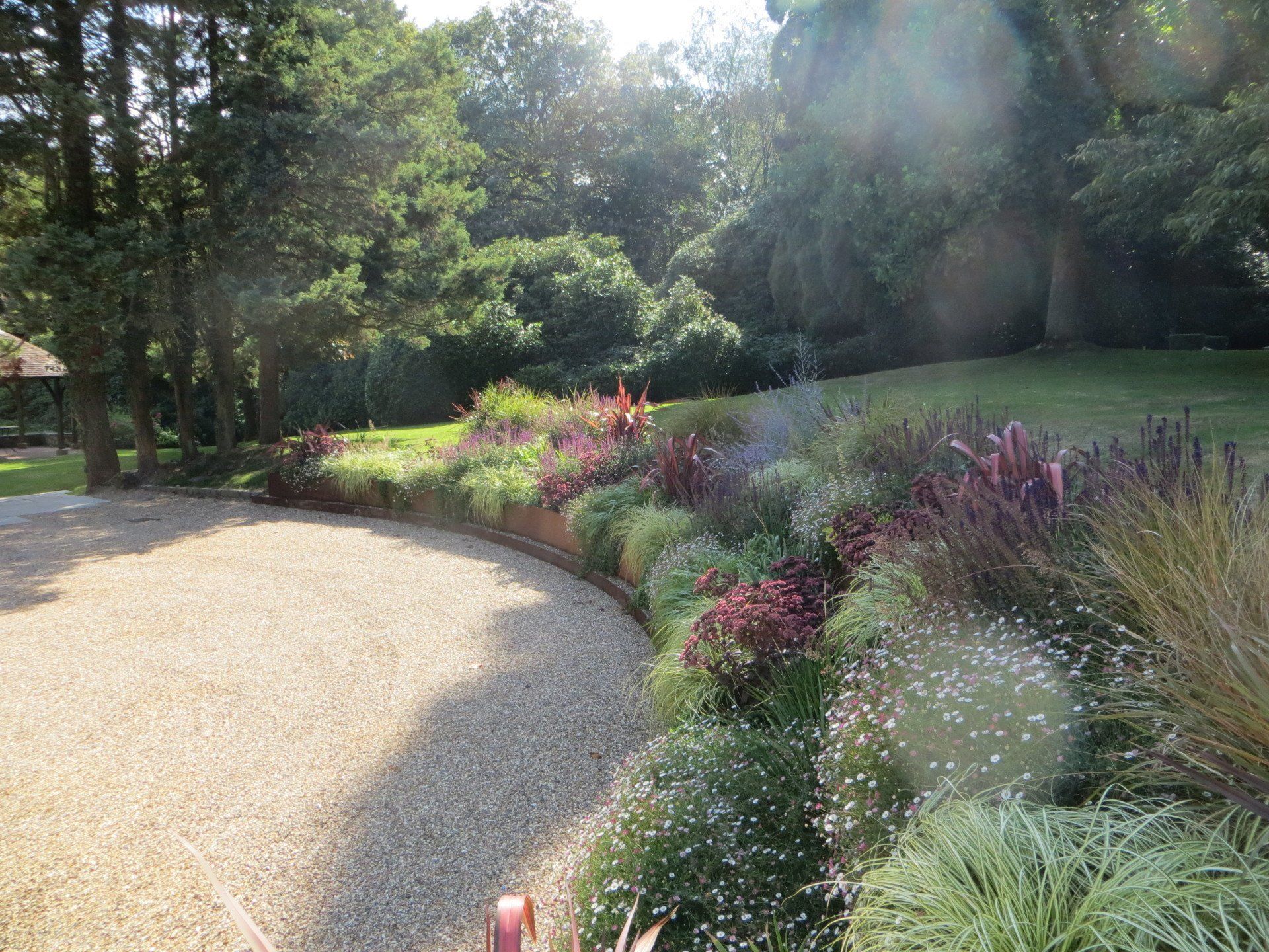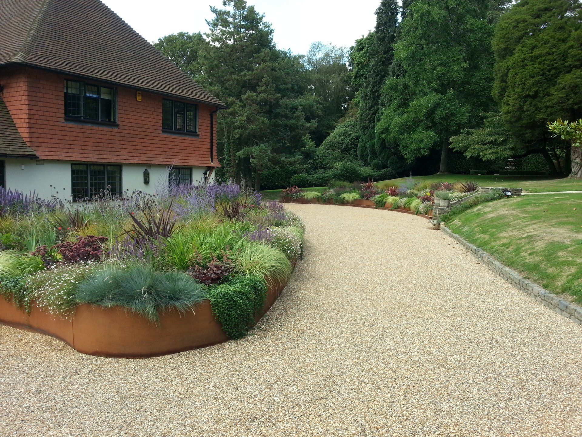 A large scale planting design and implementation project centred around the front driveway of a property in Dorking, Surrey.